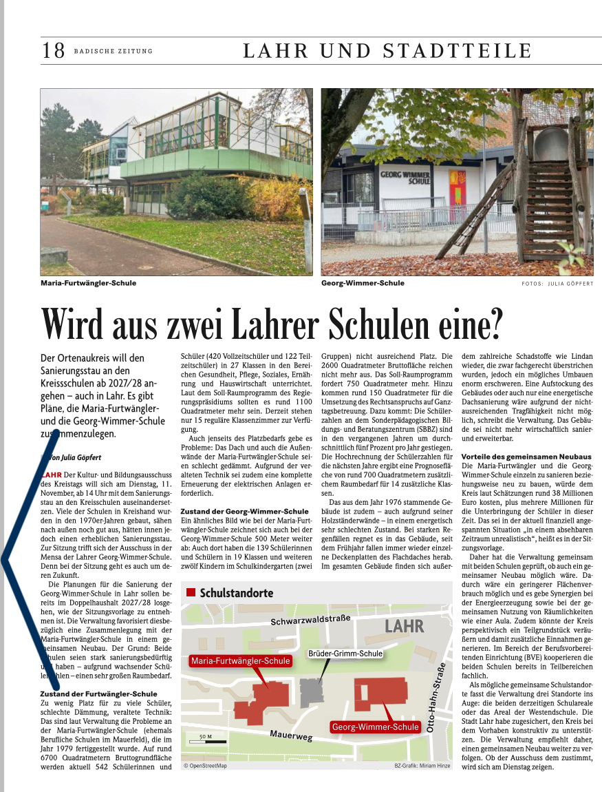- Maria-Furtwängler-Schule, Lahr: Die nächste Stufe erreichen, Badische Zeitung vom 18.11.